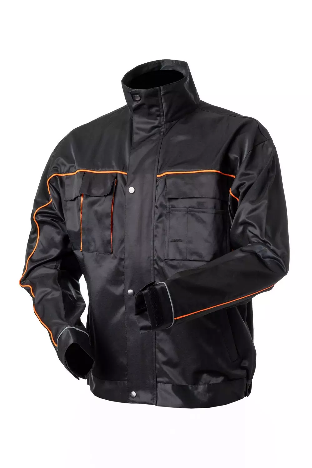 Materiaali: likaa hylkivää ja kestävää beavernylon kangasta 55% polyesteriä ja 45% puuvillaa. Kankaan paino 245 g/m2 Koot: 46-64 - 9 taskua mm. henkilökorttitasku, kännykkätasku, läpälliset rintataskut, povitasku, kynätasku, sivutaskut vetoketjulla - vetoketjukiinnitys ja tuulilista neppareilla - joustava vyötärökiristys - hihansuissa tarrakiristys ja heijastimet
