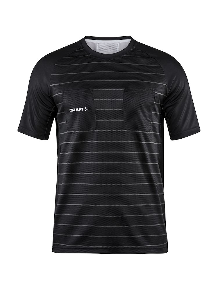 Referee tee -erotuomaripaita on valmistettu kevyestä ja joustavasta teknisestä materiaalista, joka siirtää tehokkaasti kosteutta. Kainaloiden verkkopaneelit takaavat optimaalisen lämmönsäätelyn ja joustava ja ergonominen malli tekee paidasta mukavan ja mahdollistaa hyvän liikkuvuuden. Paidassa on kaksi rintataskua ja pyöreä kaula-aukko.