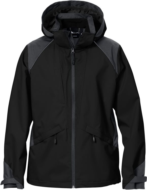 Kevyt tuulenpitävä ja vettä hylkivä kuoritakki, hartioilla kontrastiväriset ja heijastavat tereet. Naisellinen leikkaus.