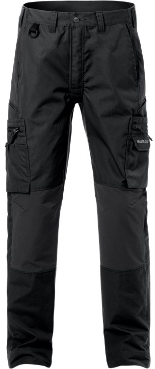 Huoltohousut, joissa on valikoiduissa kohdissa liikkumista helpottavat joustopaneelit, esim. vyötäröllä, haaroissa ja polvissa. Vahvaa ja kevyttä nopeasti kuivuvaa materiaalia, toimivat taskuratkaisut.