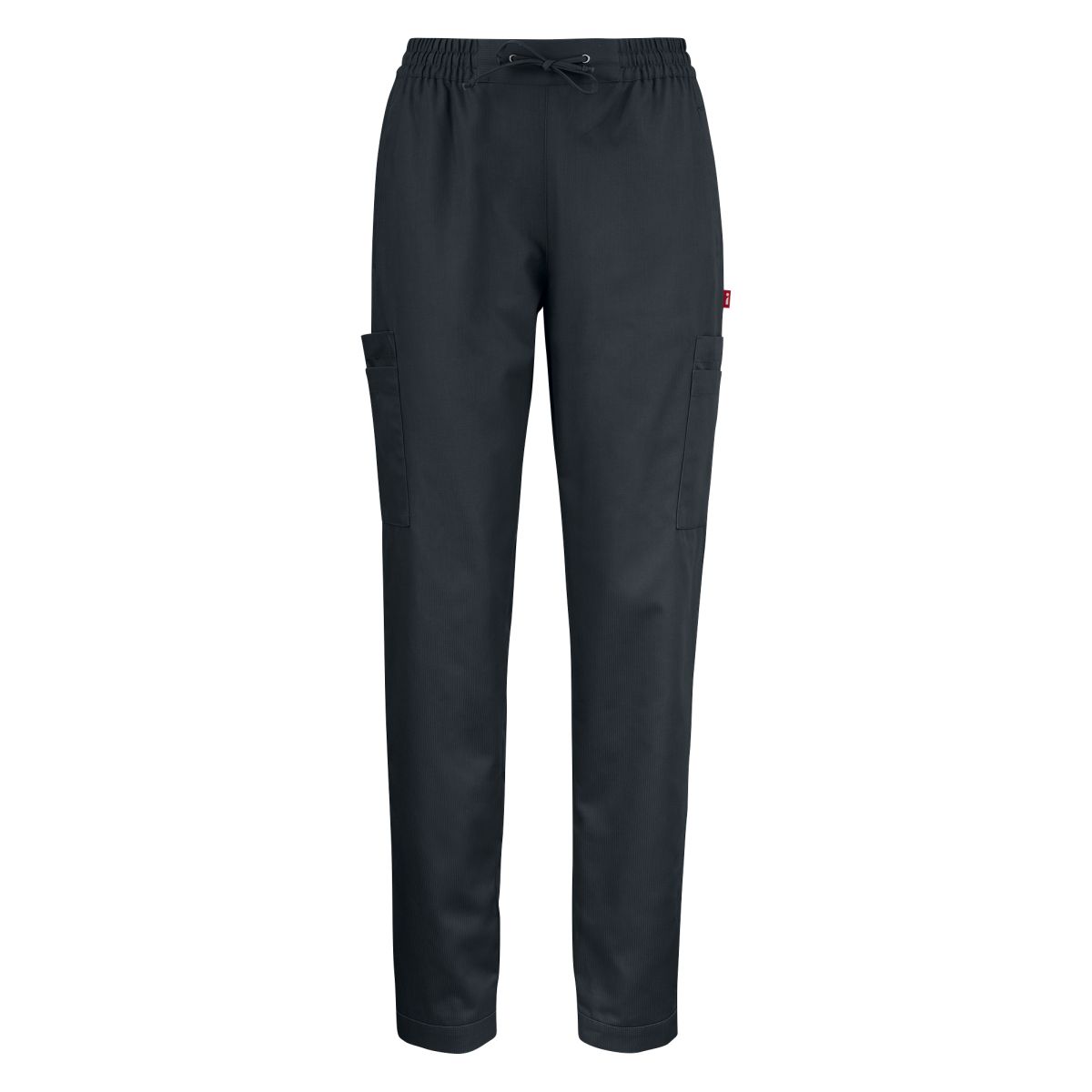Miellyttävät unisex-housut. Vyötäröllä kuminauha ja nyöri. Edessä tilavat kaitaletaskut ja molemmissa lahkeissa kaksi reisitaskua. Oikeassa lahkeessa kynätasku. Lahkeensuiden takana oleva kuminauha kaventaa hieman lahkeita. Lahkeen sisäpituus 84 cm koossa M.