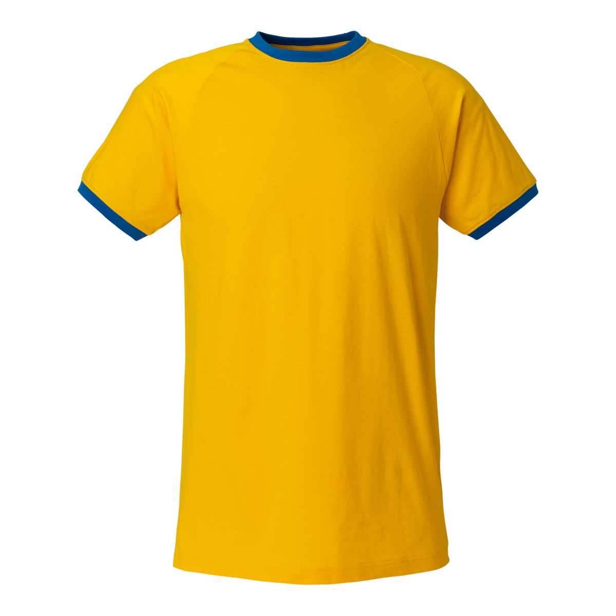 Ohio T-shirt, Yellow/light royal (980) Sporttinen t-paita, jonka pääntie ja hihansuut huoliteltu tehostevärisillä nauhoilla. Materiaali: 100% Cotton Organic Pesuohje: 60°C,Do not bleach,Do not... Lue lisää