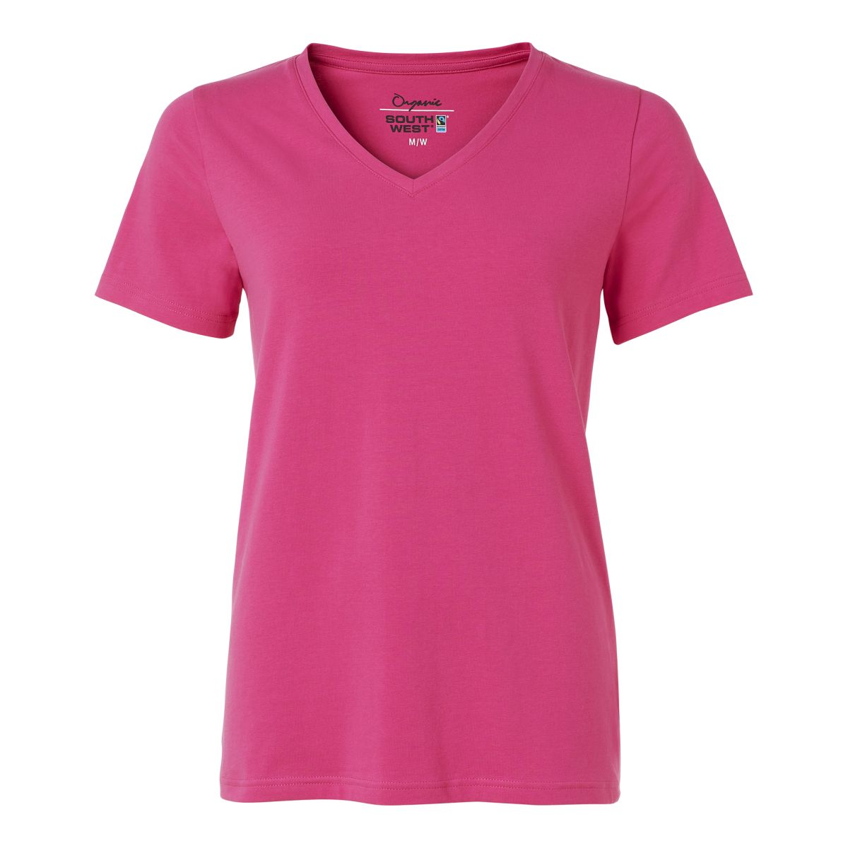 Naisten T-paita Fairtrade-sertifioidusta puuvillasta, jonka joustava materiaali antaa tuotteelle hyvän istuvuuden. Paidassa tyylikäs V-pääntie. GOTS sertifioidut värit ovat cerise, indigo och black. OCS sertifioitu väri on medium grey melange.