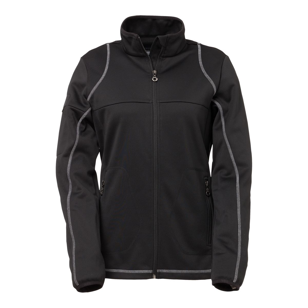 Naisten powerstretch-takki. Pääntiessä ja hihansuissa joustava, kontrastivärinen reunusnauha. Vetoketjulliset taskut ja vetimissä kiva yksityiskohta. Kaikki vetoketjut ja vetimet ovat kontrastiväriset. Tasosaumatikkaukset ja pehmeät leikkaukset. Oikeassahihassa on kännykkätasku ja sisäpuolella aukko johdolle.