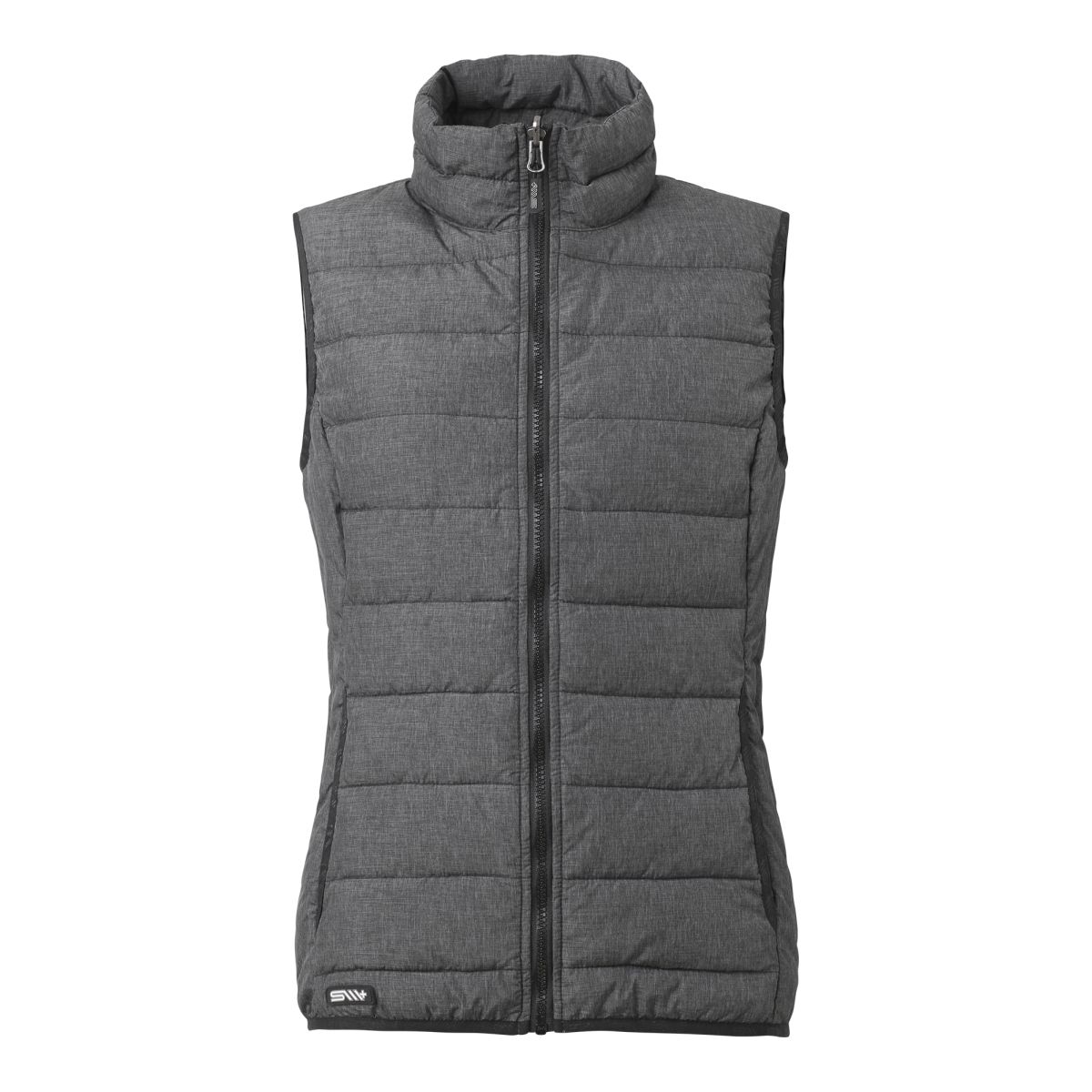 Alma Vest w, Dark grey (021) Vartalonmyötäinen naisten kevyttoppaliivi, jossa untuvanomainen polyesterivanu. Voidaan käyttää erillisenä tai kiinnittää kätevästi Alma