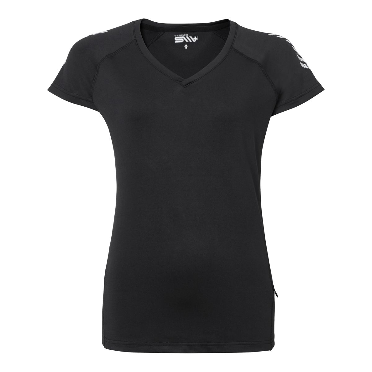 Tea T-shirt w, Black (001) V-päänteinen naisten treeni t-paita, jonka sivuissa ja selän yläosassa tuulettavaa mesh-kangasta. Heijastinpainatus hihoissa lisää näkyvyyttä pimeässä. Tasku... Lue lisää