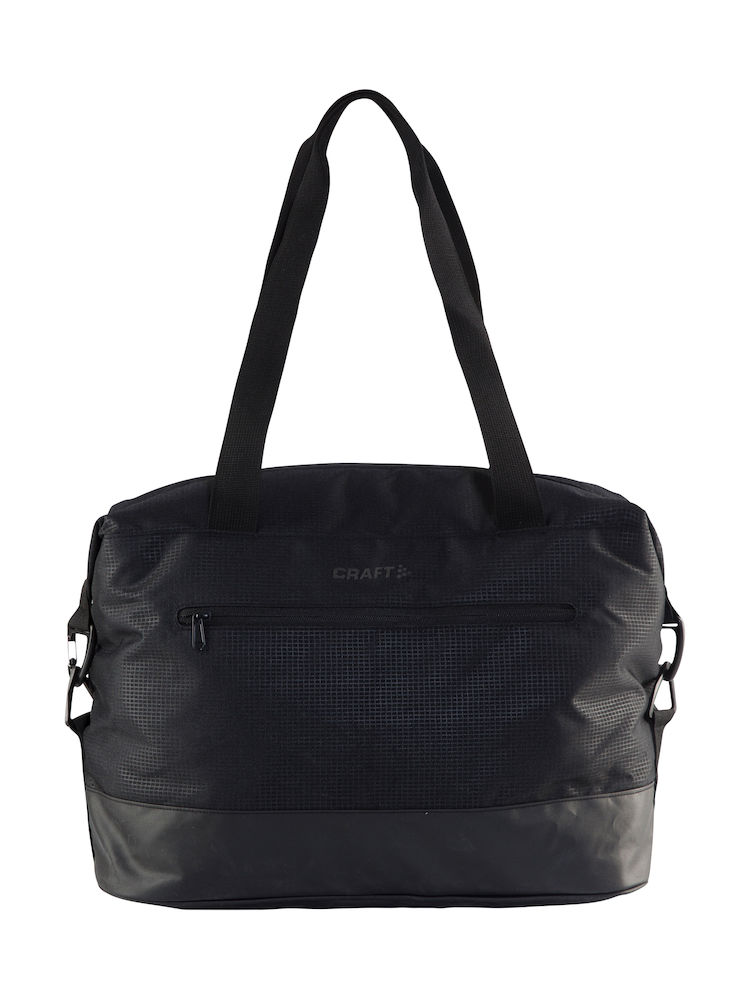 Fiksusti suunniteltu treenikassi lokeroiduilla sisätaskuilla esimerkiksi kengille ja pyyhkeelle. Yksi vetoketjullinen ulkotasku. Koko säädettävissä sivuilta.