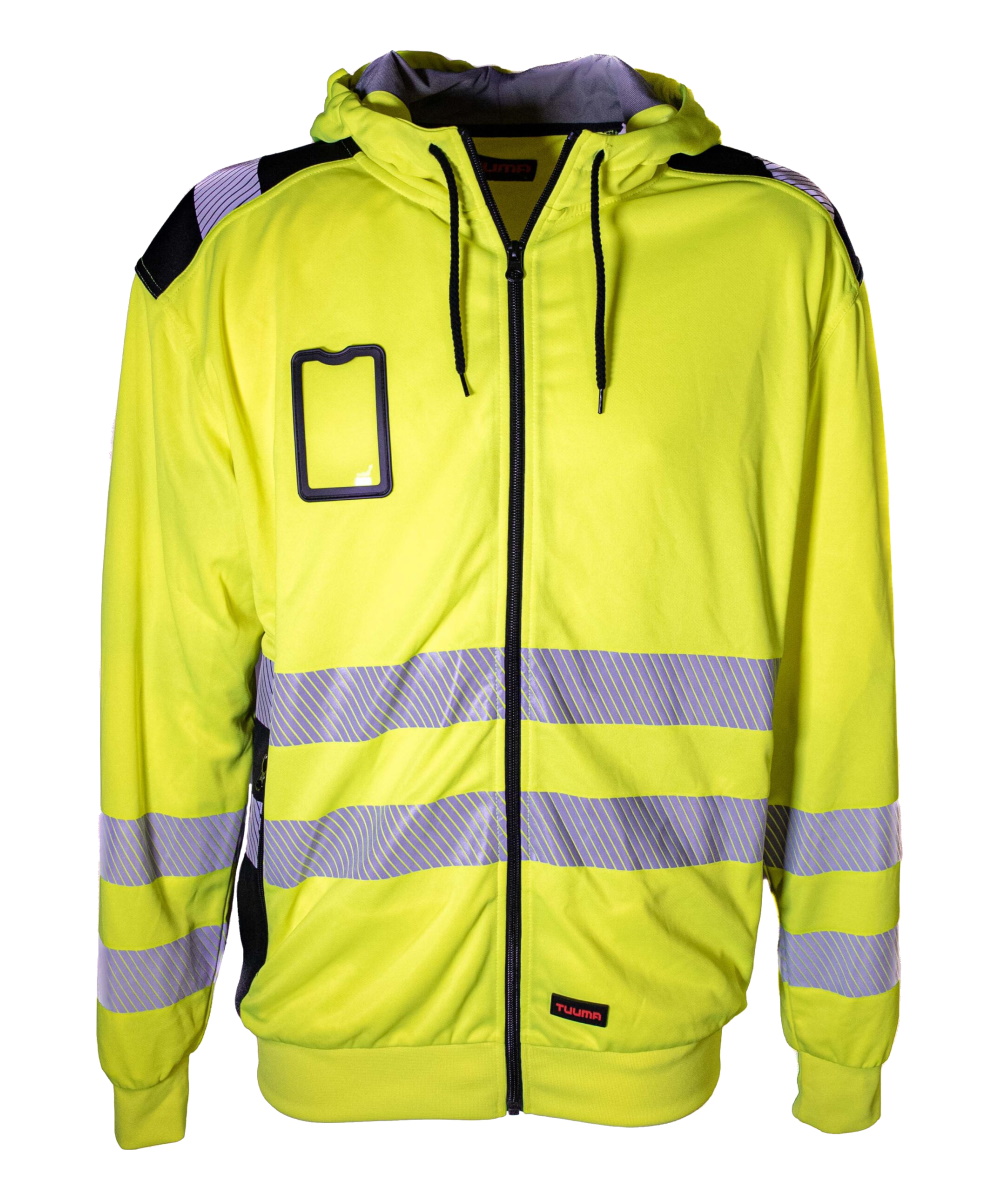 Joustavasta ja hengittävästä materiaalista valmistettu, tekninen huppari keltaisella huomiovärityksellä. Vetoketjullinen huppari on miellyttävä päällä, siinä on kokopitkä vetoketju ja vetoketjulliset sivutaskut.