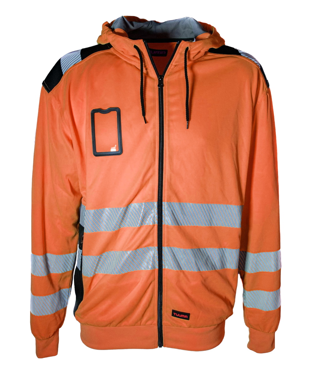 Mukava, vetoketjullinen huppari oranssilla huomiovärillä. Tekninen huppari on valmistettu joustavasta ja hengittävästä materiaalista ja siinä on vetoketjulliset sivutaskut.