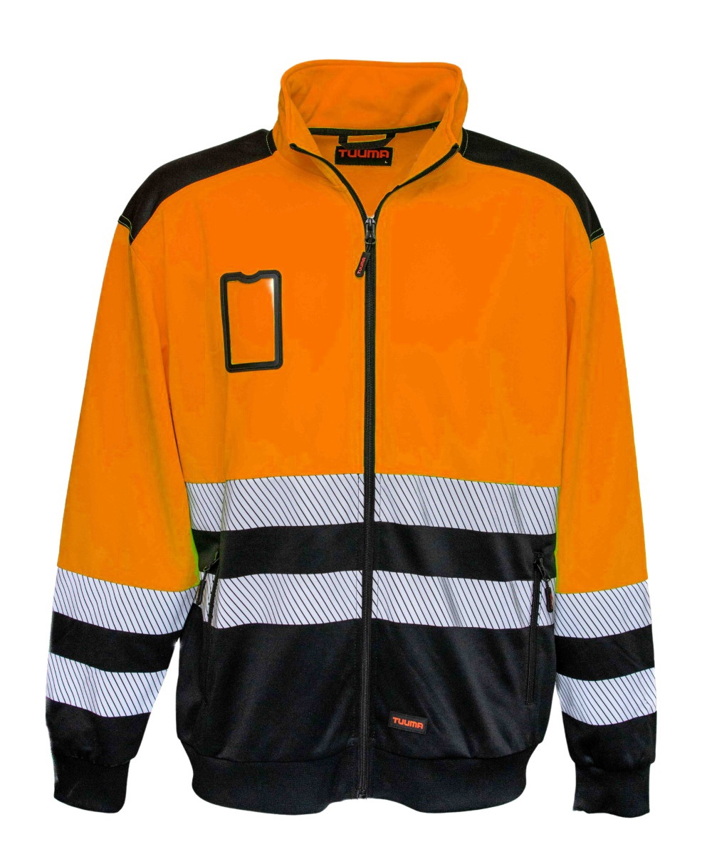 Kierrätyskankaasta valmistettu kevyt huomiovärinen takki. Tämä svetaritakki sopii hyvin kesällä ja sisätiloissa päällystakiksi tai talvipakkasilla talvitakin alle. Takin sisäpinta on pehmeää fleecekangasta ja mukava päällä. Painoheijastimet joustavat eivätkä hierrä tai paina.