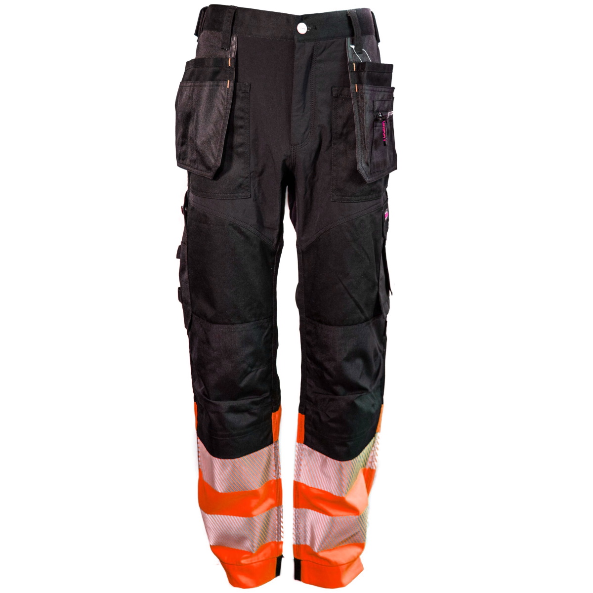 Tuuma malliston ylpeys. Nykyaikaiset riipputaskuhousut, jossa yhdistyy tyyli, istuvuus ja joustavuus. Joustava housut on valmistettu kestävästä ja miellyttävästä sekoitekankaasta ja siihen on yhdistetty joustavaa Stretch kangasta sinne, missä housun pitää joustaa. Riipputaskut edessä, joissa runsaasti yksityiskohtia. Vyölenkit. Reisitaskut sivuilla, joista toisessa puukon pidike. Tasku henkilökortille. Vyölenkit. Vahvistetut polvet, joissa taskut polvisuojille. Painetut, saumattomat katkonaiset heijastimet lahkeissa.